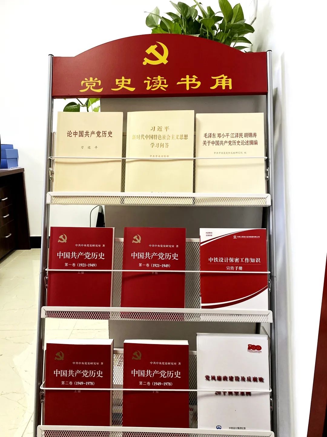 ▲橋梁院各大辦公室的“黨史讀書角”