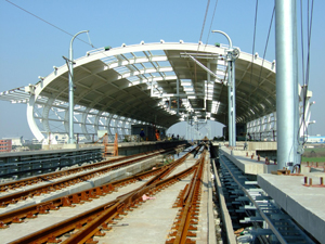重慶較新線全長18公里,起自商業(yè)中心較場口,西至鋼鐵基地新山村,全長18公里;一期工程14.35公里,時(shí)速可達(dá)80公里,該工程總投資35.5億元人民幣。該工程已于2004年11月全線建成通車,我公司承擔(dān)了全線PC梁設(shè)計(jì)和工法編制工作。