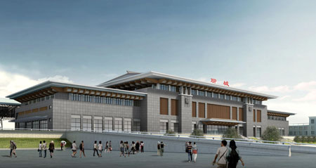 聊城地處經(jīng)濟發(fā)達的山東省,居魯西,臨河南、河北,京九鐵路、邯濟鐵路在此交匯。聊城站設(shè)計旅客最高聚集人數(shù)2500人,為中型旅客車站。站房總建筑面積14950㎡,南北長164.8m,東西寬43.4m,共三層,總高度28.9m。建筑造型取意于聊城的象征——光岳樓,左右對稱的布局、精細的雙重屋檐、厚重的墻體、古樸的色彩,使得整個站房雄渾、穩(wěn)重,并富有傳統(tǒng)韻味,體現(xiàn)了 “運河古都”聊城的城市特色。