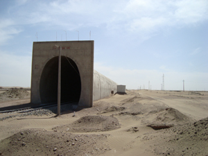 新建臨河至策克鐵路位于內蒙古自治區境內西北部,東接包蘭線巴彥淖爾市,西至中國與蒙古國邊境阿拉善盟額濟納旗策克口岸站,全線近600公里,中鐵咨詢集團負責該線西段烏蘭敖包至策克416.8公里的設計,其中,新建線路344.3公里,利用在建嘉峪關至策克鐵路改建70.5公里。該線為國鐵Ⅱ級、預留國鐵Ⅰ級條件,單線,列車時速120公里/小時,內燃牽引、預留電氣化條件,牽引質量5000噸,到發線有效長1050米。工程已竣工通車。
