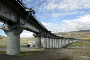 青藏鐵路為國家“十•五”重點工程之一,中鐵咨詢集團(tuán)作為主要單位獲得了國家科技進(jìn)步獎特等獎。由于凍融等惡劣自然條件,青藏鐵路橋梁的設(shè)計、施工、養(yǎng)護(hù)都具有很大難度。中鐵咨詢(原鐵道專業(yè)設(shè)計院)針對工程特點提出了高耐久性橋梁的設(shè)計理念。凍融作用、鋼梁的低溫防脆斷、高耐久性橋梁設(shè)計均超出了橋梁設(shè)計規(guī)范內(nèi)容,中鐵咨詢在完成多項科研的基礎(chǔ)上,提出了優(yōu)先采用先張梁等10多項提高耐久性措施,提出了低溫、大溫差地區(qū)鋼梁防脆斷設(shè)計措施,提出了青藏鐵路橋梁的設(shè)計指標(biāo)和設(shè)計原則。在混凝土先張梁中采用了折線配筋技術(shù)、結(jié)合梁采用了低溫防脆斷措施,工程實踐證明效果良好。青藏鐵路耐久性的成果也可供其它低溫地區(qū)的橋梁設(shè)計施工借鑒。