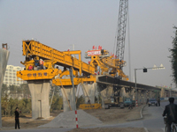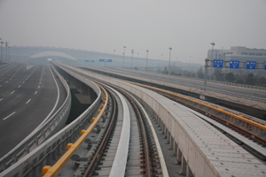 北京軌道交通首都國際機場線工程是北京舉辦2008年奧運會的配套工程之一,該工程線路起點位于東直門外大街與東直門大街的交會處,沿東直門外大街向東至東直門外斜街,轉向東北沿東直門外斜街下穿東三環路,過東三環路后進入機場高速公路與京順路間的綠化帶,并漸出地面,后上跨東四環路,然后沿機場高速路與京順路間的綠化帶(靠近京順路一側)至北皋立交橋,線路移至機場高速公路的東南側,沿機場輔路至溫榆河前線路分叉,一支沿李天路接入首都機場T3航站樓站,另一支沿首都機場路接入首都機場T1和T2航站樓站。線路全長27.76 Km,其中高架線路21.7Km,地下線路長度為4.87 Km,其余為地面線路,最小平曲線半徑150米,最大縱坡為5%。該工程總工期僅為3年,計劃2005年6月開工,2008年4月1日建成通車試運行,2008年7月1日開始載客試運營。中鐵咨詢集團承擔該工程第2標段(五元橋至溫榆河分叉點)設計工作。
