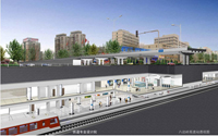 本站是北京地鐵十號線一期工程的中間站,位處八達嶺高速公路和北土城路的交叉口,下穿八達嶺高速健德橋,為全地下中間分離式單洞單層、兩端雙層島式站臺車站,站臺寬度14.9m,有效站臺長度120m,車站總寬23.4m,總長169.2m,覆土厚度為中間單層部分9.05m、雙層部分為4.25m。車站主體結構中間部分為兩個單洞,采用淺埋暗挖法施工;兩端為雙層三跨雙柱矩形框架,采用明挖法施工,鉆孔灌注樁基坑圍護。本站特點是將車站結構和橋梁樁基進行了有機的處理,方法新穎,經濟合理。工程已建成通車。
