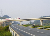 廣州軌道交通四號線列車采用直線電機(jī)列車,4節(jié)編組,最高運(yùn)行速度達(dá)90km/h。線路坡度達(dá)55‰,高架區(qū)間全長22km,采用主跨30m,輔助跨度25m的整孔預(yù)制箱梁和節(jié)段預(yù)制箱梁。中鐵咨詢集團(tuán)承擔(dān)第二和第七標(biāo)段設(shè)計(jì)工作。